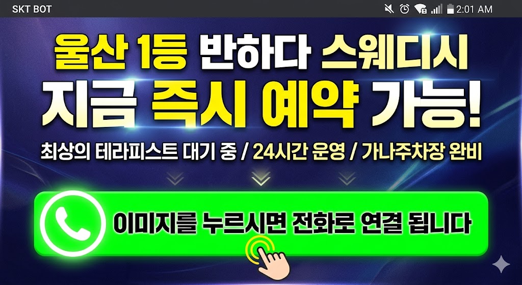 안녕하세요, 울산 프리미엄 스웨디시의 정석 **'반하다'**입니다. 여유로운 토요일, 사장님들을 위한 최상의 힐링 파트너를 소개합니다.